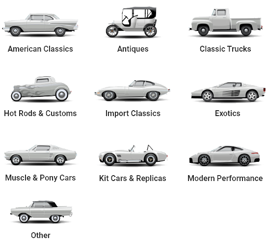 Category Icons created for Autotrader Classics. No studio, white background photography was available for older vehicles so I created these vector icons to emulate “Evox” style studio photography.