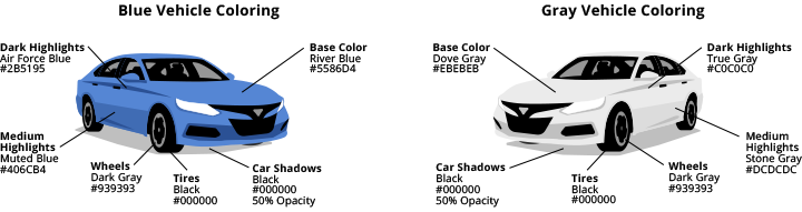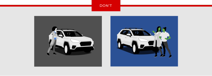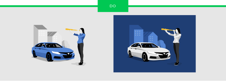 In addition to a multitude of illustrations, I created a guidance area within Kelley Blue Book’s Argo Design System on how to compose them. The created elements included, people, vehicles, backgrounds and other iconic items. It also outlined do’s and don’ts, color usage, and size restrictions.